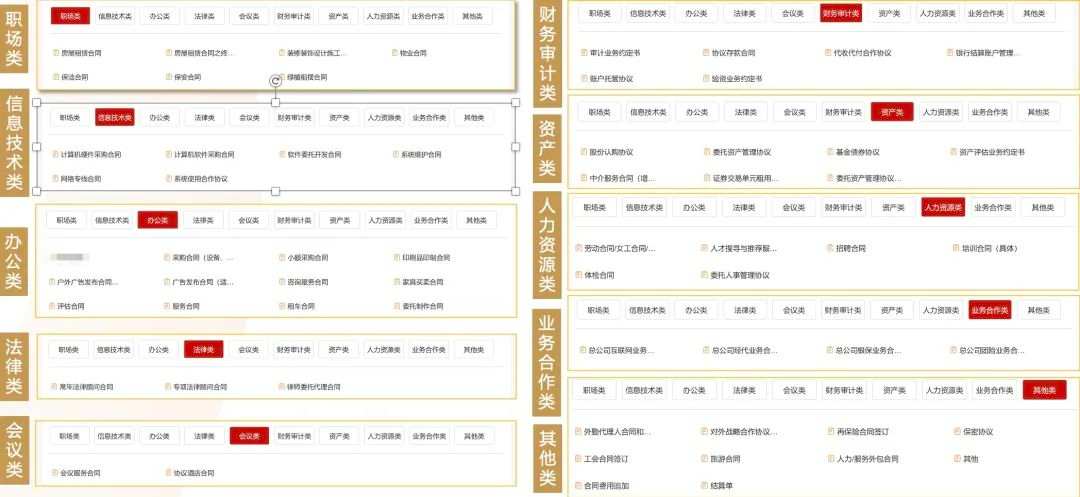 在起草界面,預設有豐富多樣的起草模板,旨在為用戶提供更加便捷、高效的合同起草體驗。通過這些預設模板,用戶可以輕松地根據(jù)自己的需求選擇合適的模板,并快速生成合同草案。這一功能不僅大大節(jié)省了用戶在起草合同過程中所需的時間和精力,還能提高工作效率。