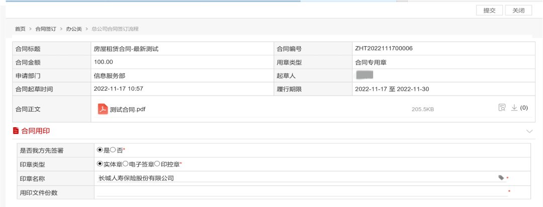 改變現(xiàn)行合同管理模式,實現(xiàn)合同全流程管理,通過合同臺賬可追蹤、掌握合同全生命周期情況;改變傳統(tǒng)的“合同在先,動支在后,合同支付分離”的模式,將合同起草與動支合并,費用報銷前置于合同系統(tǒng),創(chuàng)新性打造合同全流程管理新模式;取消費控動支審批流、取消費控合同維護審批流: