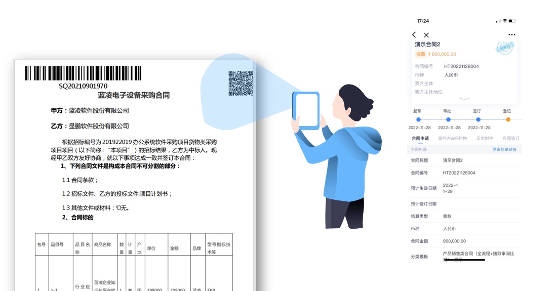 ??亮點功能二:除條形碼外,合同另附二維碼防偽