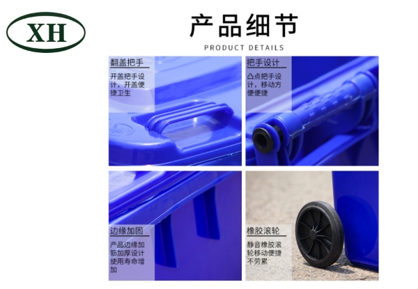 大家好,今天我給大家簡(jiǎn)單的介紹一下我們這個(gè)240升的塑料掛車(chē)?yán)?,它采用的是百分百高密度聚乙烯,一次成型制作而成,?jiān)固耐用,低溫耐寒,防曬防熱;采用橡膠加厚實(shí)心輪,堅(jiān)固耐用,防磨耐壓;防滑紋路手柄,方便推拉;內(nèi)壁光滑,便于清潔。我們廠家直銷(xiāo),支持定制,歡迎訂購(gòu)!