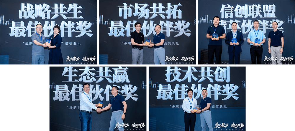 大會(huì)也為獲得戰(zhàn)略共生最佳伙伴獎(jiǎng)、生態(tài)共贏最佳伙伴獎(jiǎng)、技術(shù)共創(chuàng)最佳伙伴獎(jiǎng)、市場共拓最佳伙伴獎(jiǎng)、信創(chuàng)生態(tài)聯(lián)盟精英獎(jiǎng)的伙伴頒發(fā)了榮譽(yù)證書。