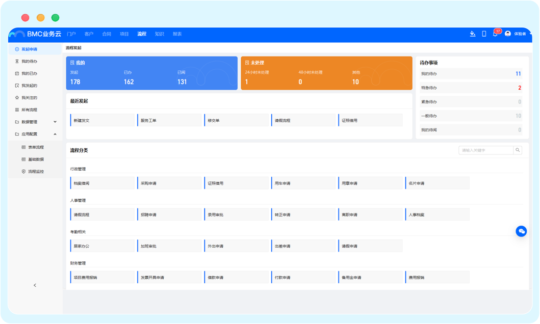 發(fā)起申請:預(yù)置行政、人事、財務(wù)常見20+流程