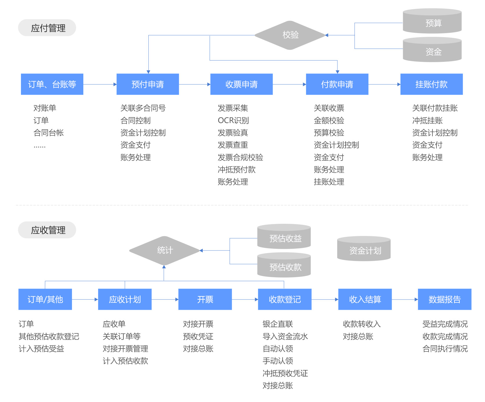 員工工作臺(tái):常用鏈接、應(yīng)用導(dǎo)航支持用戶快速定位和查找應(yīng)用;財(cái)務(wù)看板可方便了解用戶個(gè)人借款、未報(bào)銷費(fèi)用以及在途的費(fèi)用。