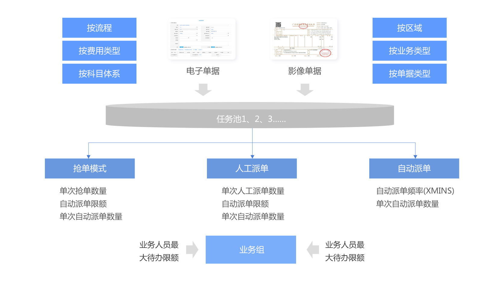 財(cái)務(wù)工作臺(tái):支持審單崗、出納崗和記賬崗的切換,不同的崗位呈現(xiàn)該崗位需要處理的待辦項(xiàng),以及單據(jù)完成情況。