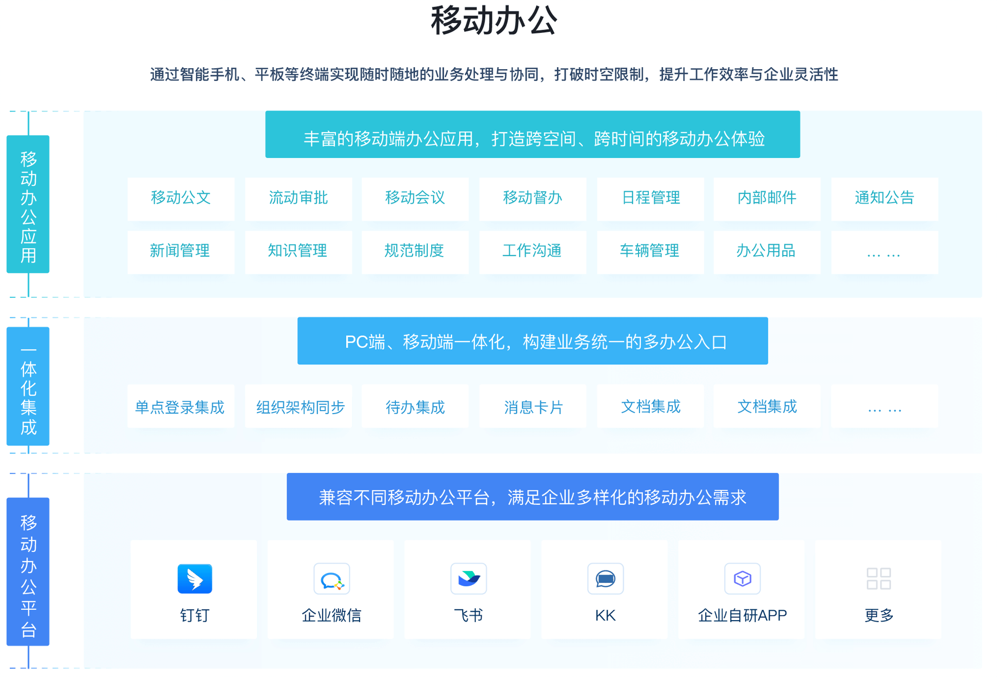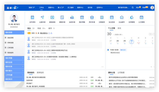 所有工作統(tǒng)一推送、集中處理,包括第三方系統(tǒng)待辦、流程、消息,或知識;支持流程快速發(fā)起、跟進,讓工作更專注、更高效
