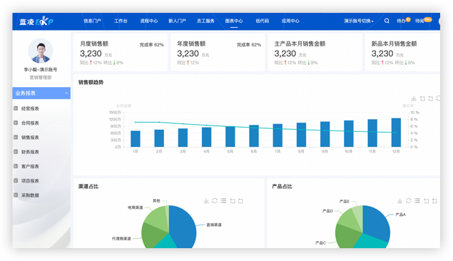提供豐富的圖表類型來滿足不同數(shù)據的處理需求,為企業(yè)提供更加直觀、清晰的數(shù)據信息,幫助企業(yè)梳理核心經營數(shù)據,歸口分析口徑