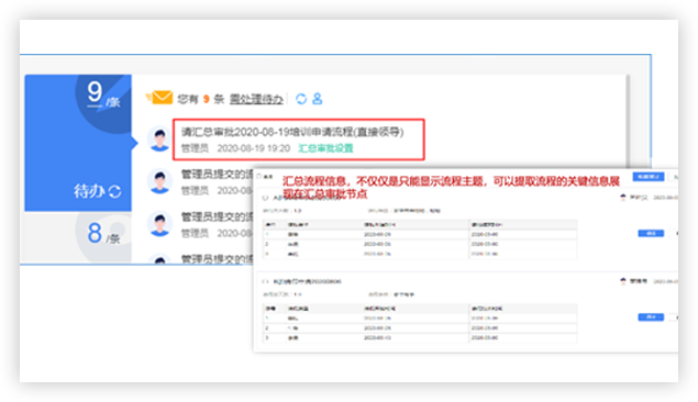 定時通過待辦/郵件匯總于一個頁面,發(fā)送審批摘要信息,讓處理人打開待辦,就可以批量快速審流程,減少信息干擾,讓工作更專注