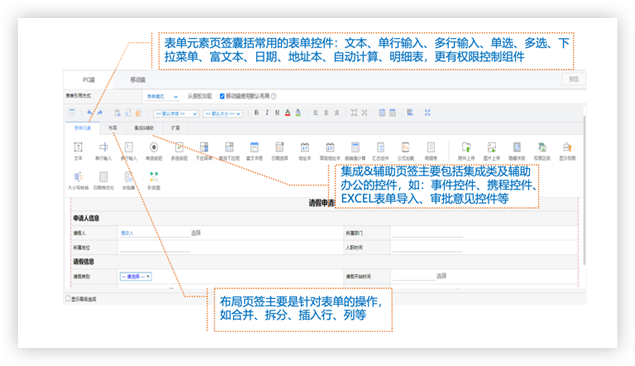 采用圖形化、可配置界面,可通過拖拉拽方式,所見即所得,快速完成表單與流程操作配置,能夠快速響應企業(yè)業(yè)務創(chuàng)新及復雜管理需求