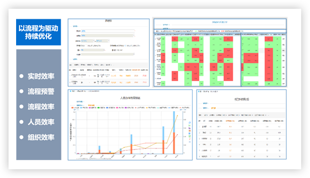 系統(tǒng)支持對流程運行質量、人員辦件效率、部門辦件效率等進行分析,統(tǒng)計發(fā)現(xiàn)流程運行過程中的問題,助力流程運營持續(xù)的優(yōu)化和改進