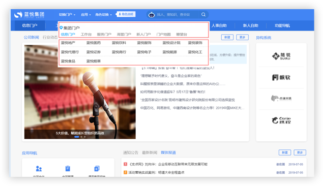 架設總部、分子公司等門戶,實現(xiàn)數(shù)據、權限分級管控,門戶風格與內容均可自定義。統(tǒng)一信息發(fā)布,確保政策、工作安排同步