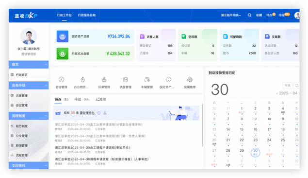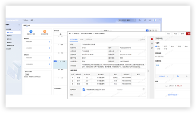 支持接待新建、審批、編寫計劃、審核、發(fā)布、日程同步、歸檔等應用,讓接待中的“人、財、物、事”安排更有條理,提升服務滿意度