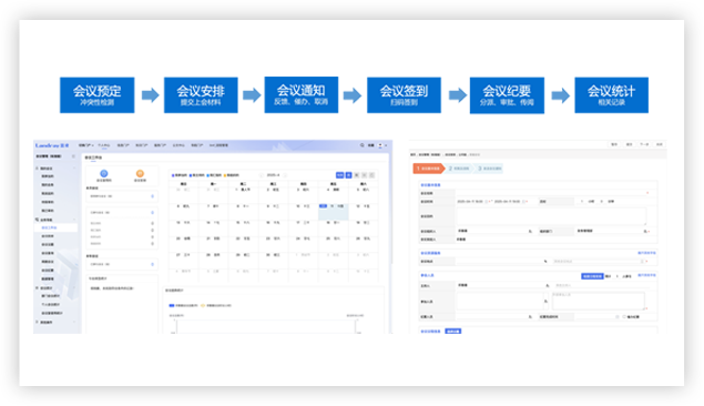 提供會前、會中、會后管理功能,會議看板快速預約會議室,發(fā)起會議申請;支持會前智能通知、掃碼簽到、議題管理、會后紀要共享等