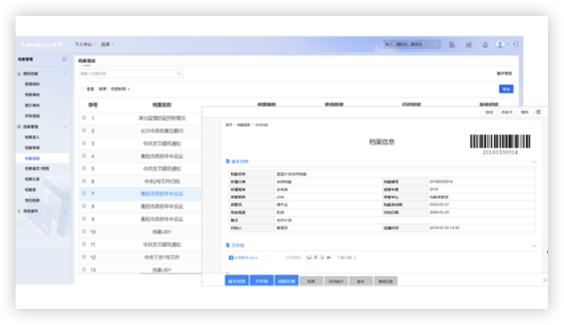 提供檔案登記、借閱、鑒定、銷毀等全周期管理,歸檔功能支持從公文管理政務版、合同管理和流程管理等模塊直接歸檔操作,高效便捷