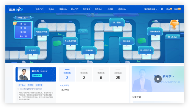 打造新人工作學習平臺,提供基于崗位的試用期工作指引,每周學習、工作任務一目了然,幫助更多的新人快速入模,更高效成長
