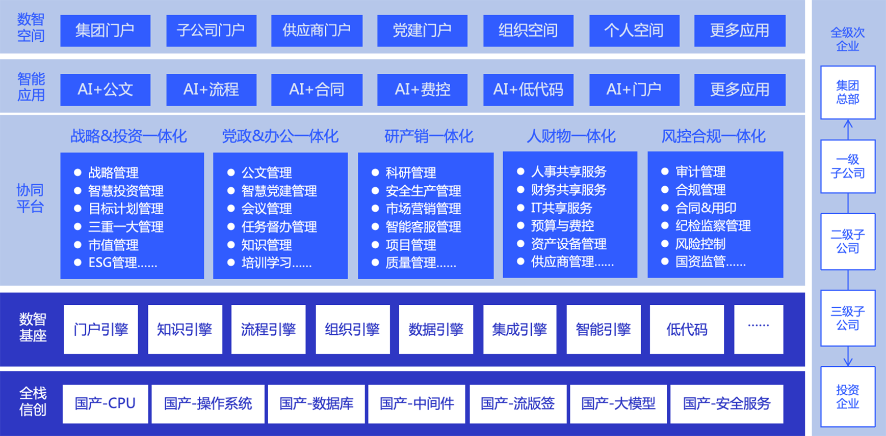 攜手藍(lán)凌打造集團(tuán)公司、分(子)公司、直屬企業(yè)三級單位一體化辦公平臺,實(shí)現(xiàn)跨層級跨部門的業(yè)務(wù)協(xié)作,實(shí)現(xiàn)“文、會(huì)、事”及各類業(yè)務(wù)審批的“掌上通”