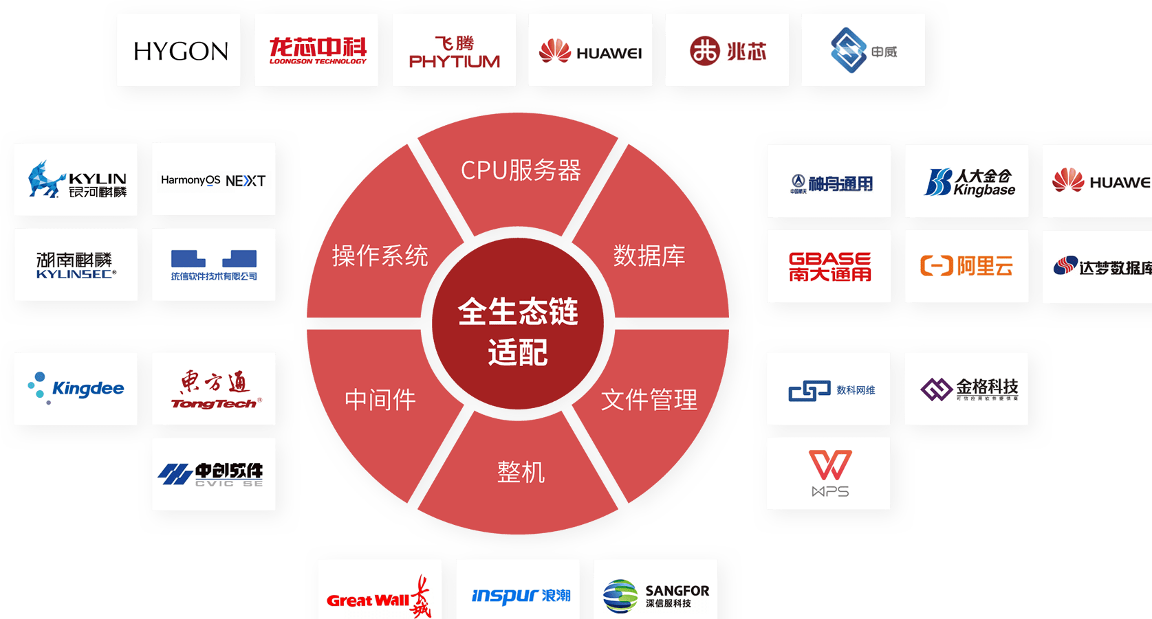 產(chǎn)品適配國產(chǎn)主流基礎(chǔ)軟硬件,覆蓋芯片、整機、操作系統(tǒng)、數(shù)據(jù)庫、中間件、瀏覽器、流版軟件、身份認證、電子簽章等各個核心模塊