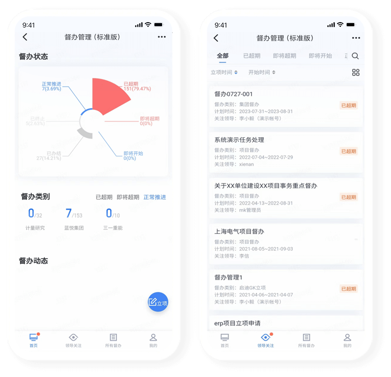 移動督辦工作臺,各項數(shù)據(jù)一目了然,從發(fā)起到考評,流程閉環(huán)提效督辦;全程在線,督辦任務(wù)執(zhí)行進度可控。