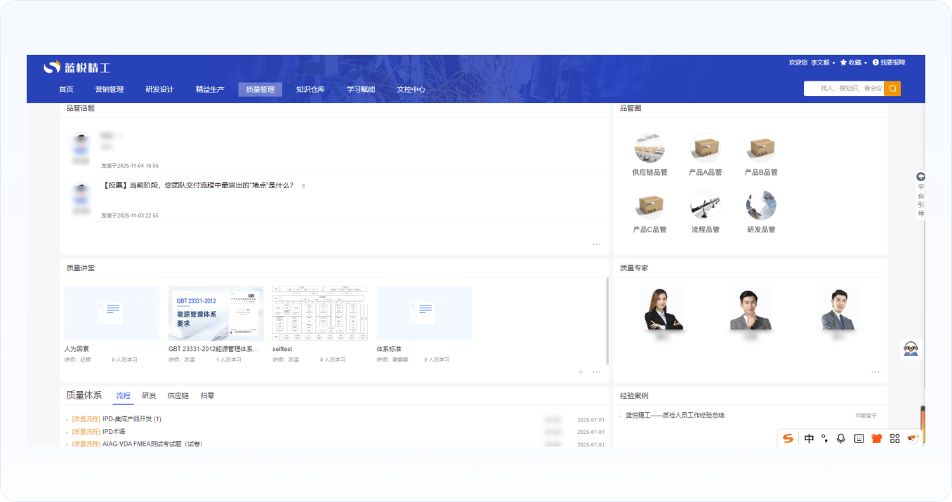 覆蓋質(zhì)量管理動態(tài)、品管圈子、質(zhì)量專家、質(zhì)量知識學(xué)習(xí)課堂等板塊,促進(jìn)質(zhì)量管理知識沉淀、利用、交流,加強企業(yè)質(zhì)量管理建設(shè)