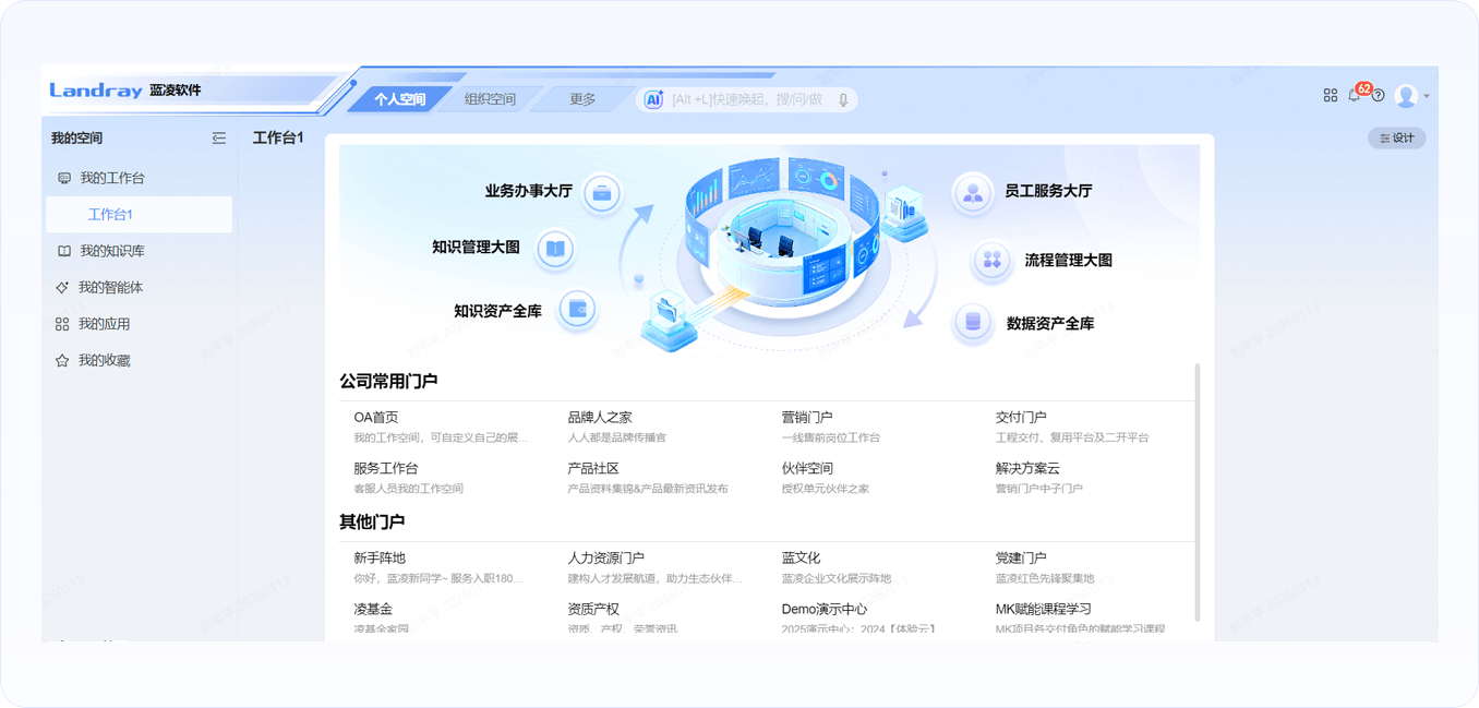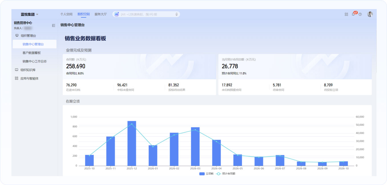 基于藍(lán)凌數(shù)智空間構(gòu)建營銷、產(chǎn)研、市場、分子公司等30+組織空間,實現(xiàn)各場景業(yè)務(wù)入口統(tǒng)一、數(shù)據(jù)互通與資源共享,同時適配不同組織個性化需求,打破部門與地域壁壘,提升跨組織協(xié)同效率,為企業(yè)規(guī)?;l(fā)展與業(yè)務(wù)創(chuàng)新提供堅實支撐。
