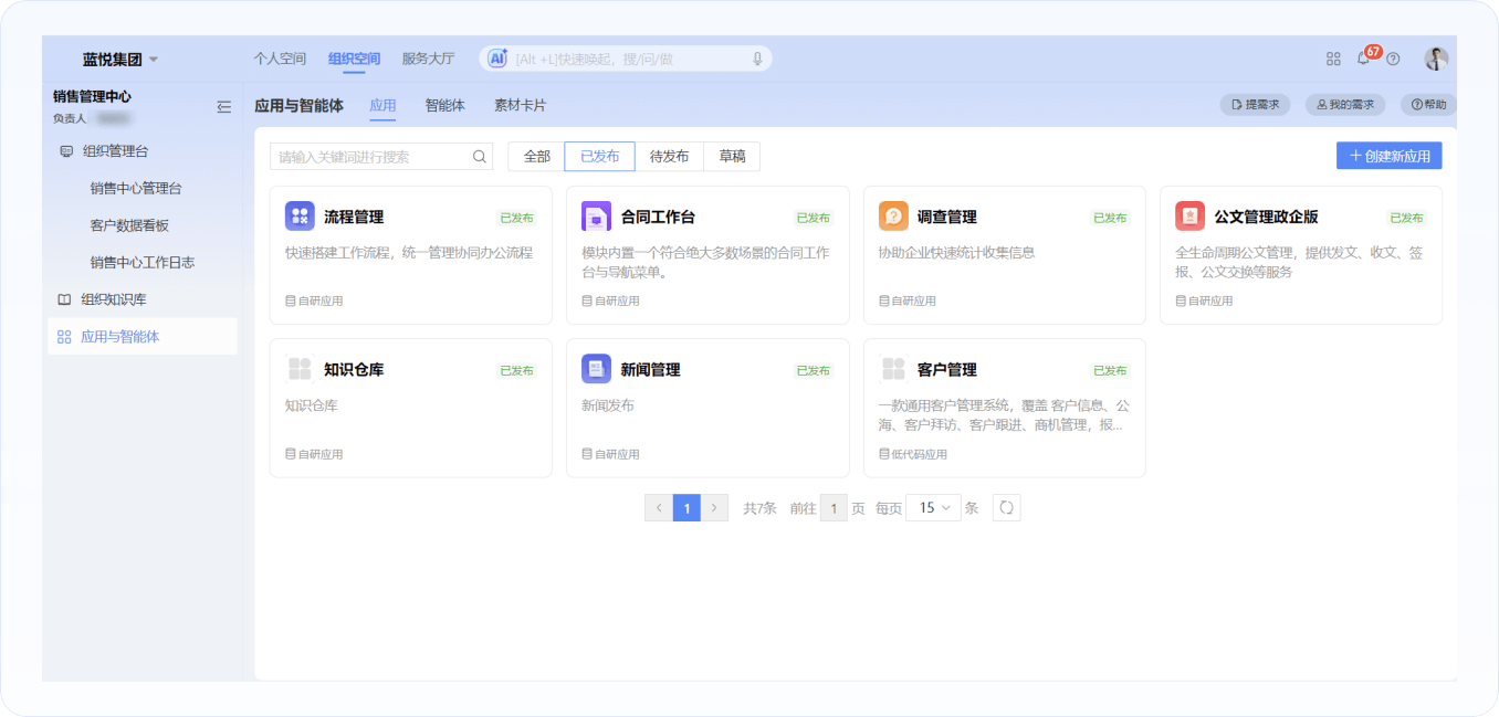 深度貼合企業(yè)不同業(yè)務(wù)特性與場景需求,按需構(gòu)建專屬業(yè)務(wù)應(yīng)用與智能體。從部門協(xié)作到全流程管理,為每個組織空間精準(zhǔn)注入AI驅(qū)動的智能生產(chǎn)力