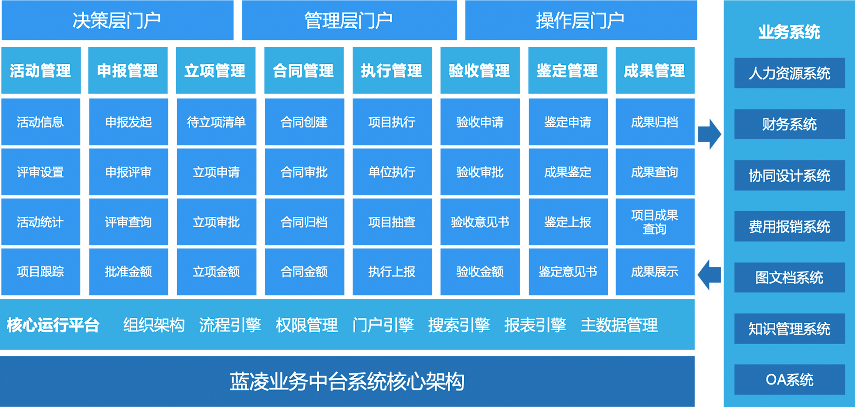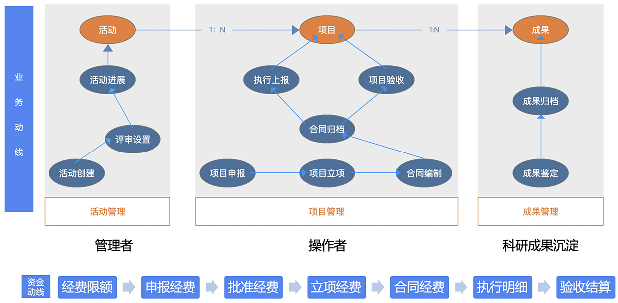通過網(wǎng)上申報、審核、審批、業(yè)務協(xié)同推動研發(fā)項目全程動態(tài)跟蹤和管理,實現(xiàn)科研項目“人才、資金、事務、成果”全生命周期管理,保障項目執(zhí)行