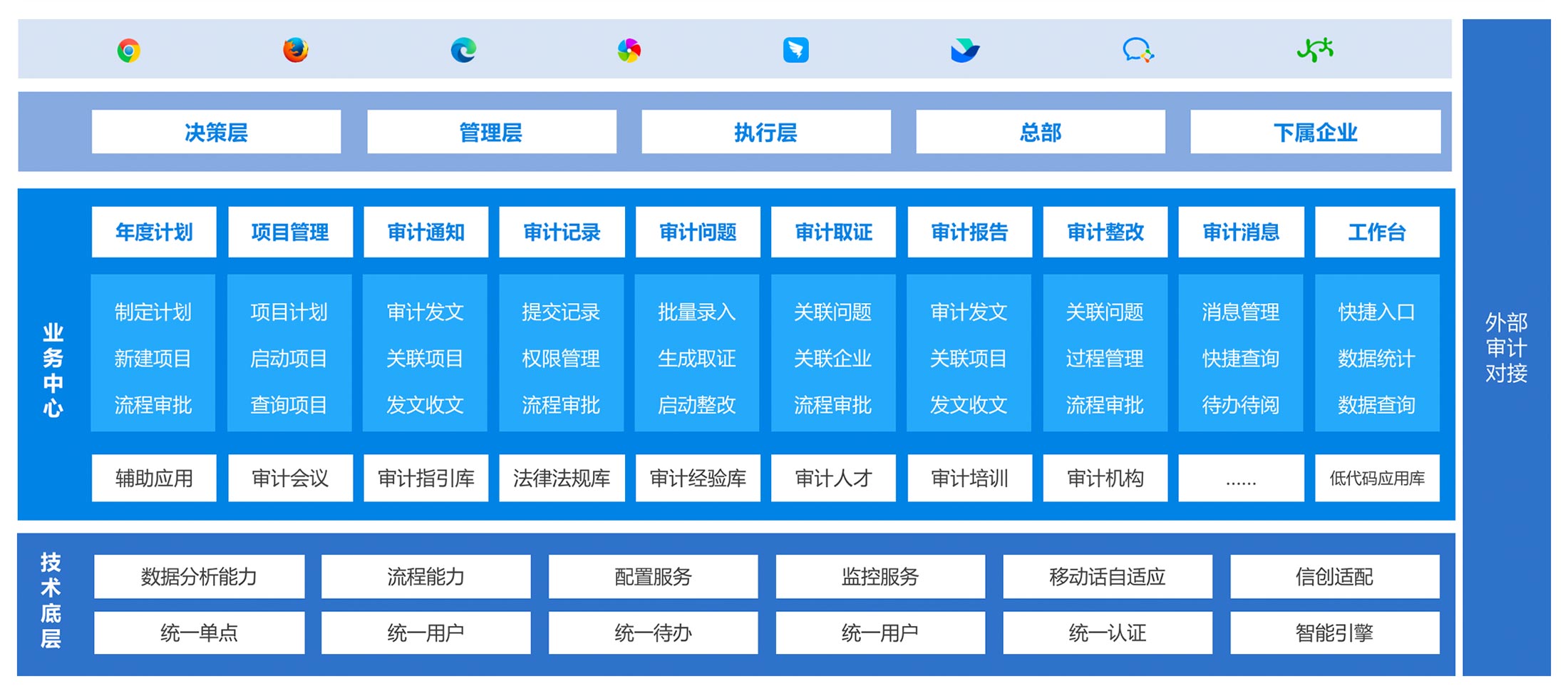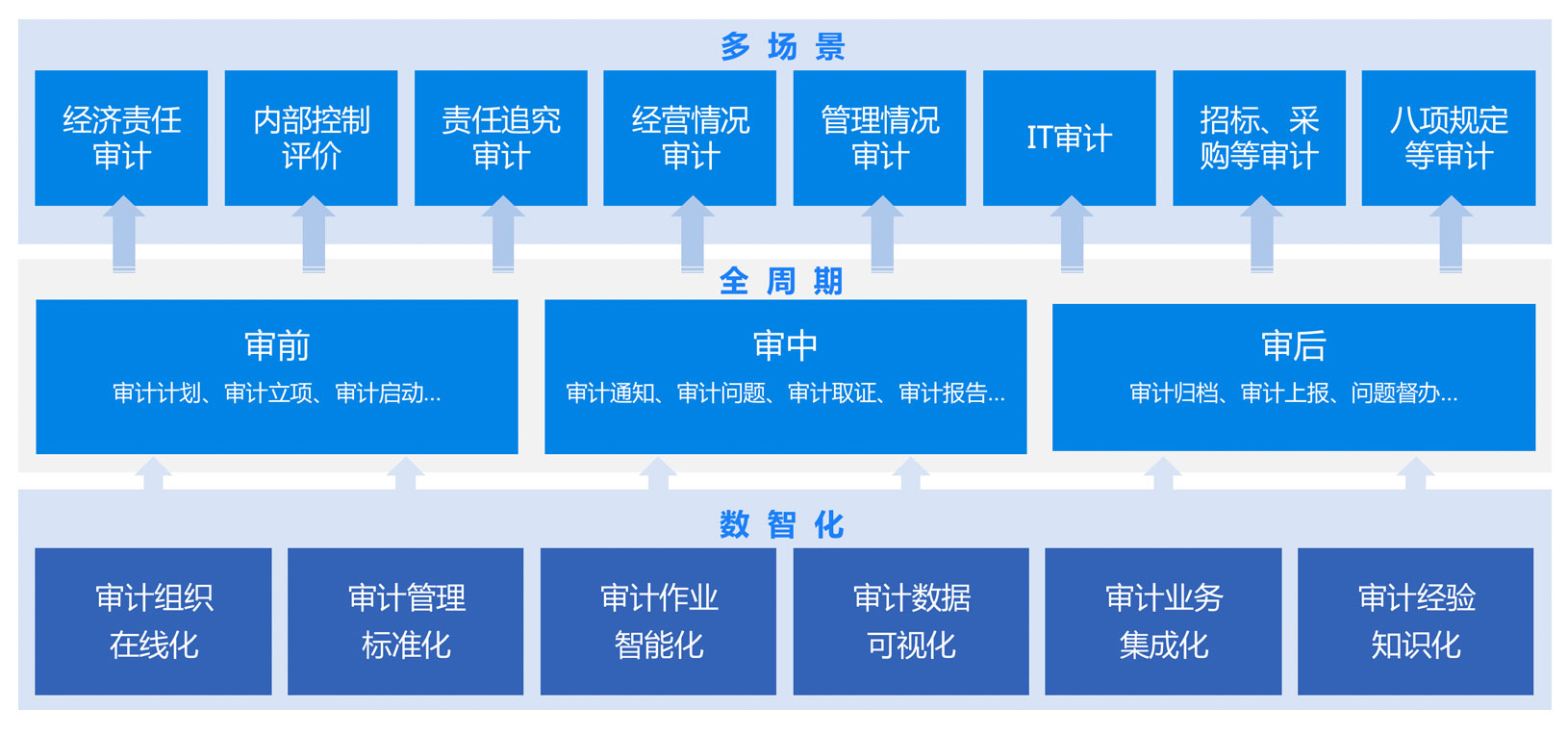 覆蓋審前、審中、審后階段,實現(xiàn)審計計劃、項目啟動、取證、報告、整改等全周期管理,提升審計管理精細(xì)化水平