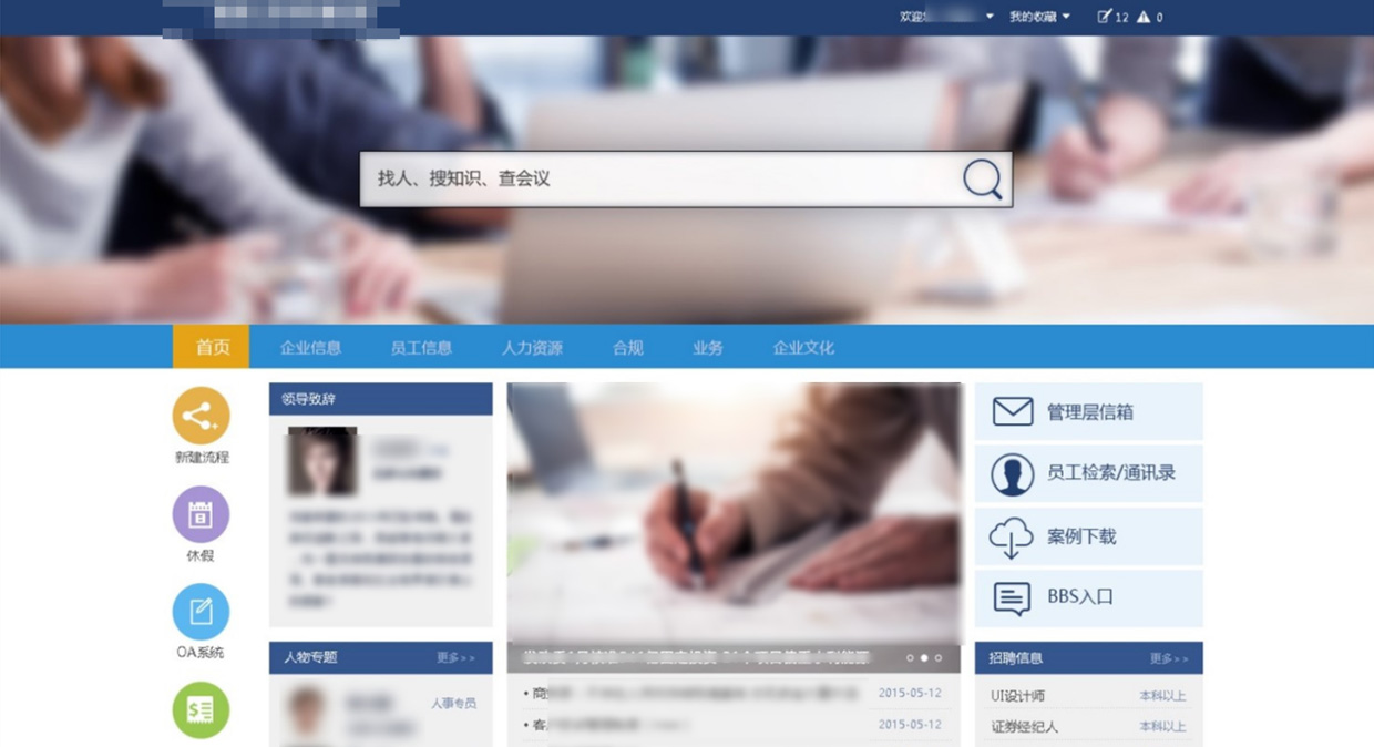 - 構(gòu)建投資管理門戶、債券融資門戶、領(lǐng)導(dǎo)門戶、新員工門戶等多角色門戶,讓不同崗位員工快速獲取工作信息、辦公應(yīng)用,變“人找事”為更高效“事找人”
