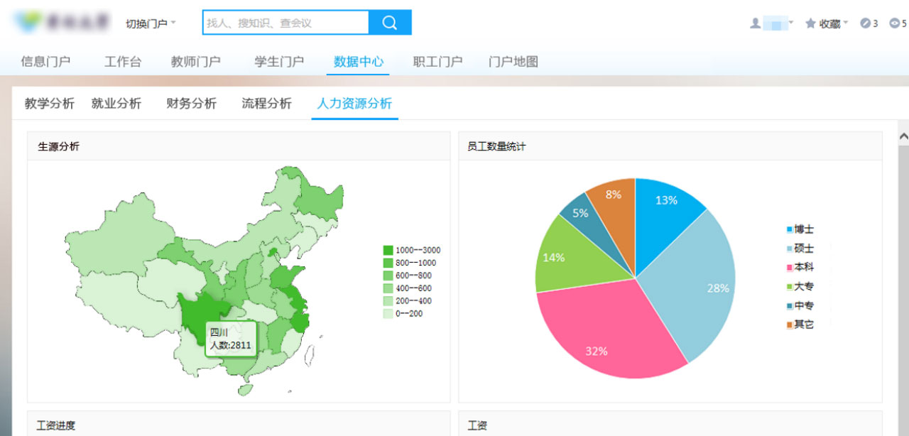 通過打造數(shù)據(jù)中心,匯總教學(xué)課題進(jìn)度分布、學(xué)生就業(yè)情況、全校員工學(xué)歷比例、專項資金支出情況、科研項目分析等各類數(shù)據(jù),并以圖表形式清晰呈現(xiàn),方便領(lǐng)導(dǎo)層實時查看,輔助科學(xué)決策