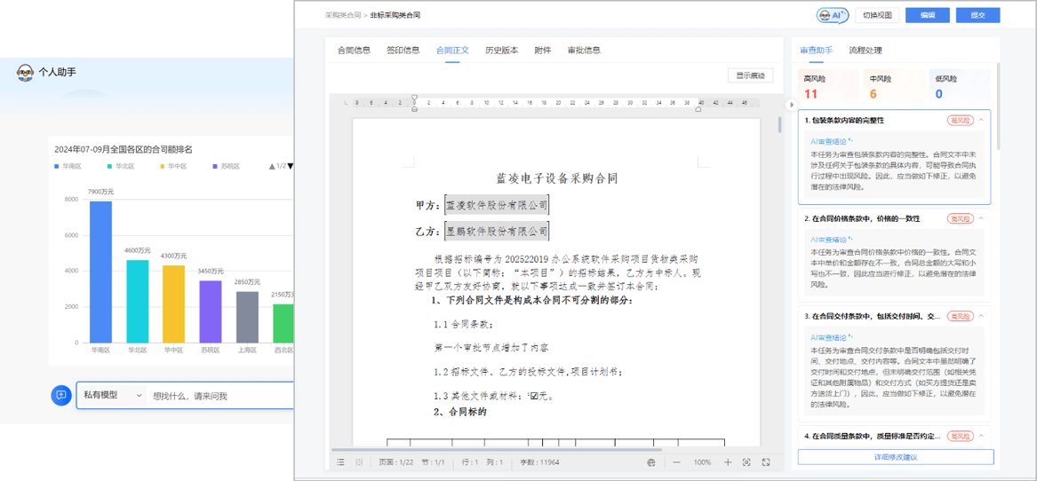 接入藍(lán)博士LanBots.AI,可支持合同智能抽取、條款生成&改寫、智能審查、智能比對(duì)、智能問數(shù)等,讓合同管理更高效、合規(guī)
