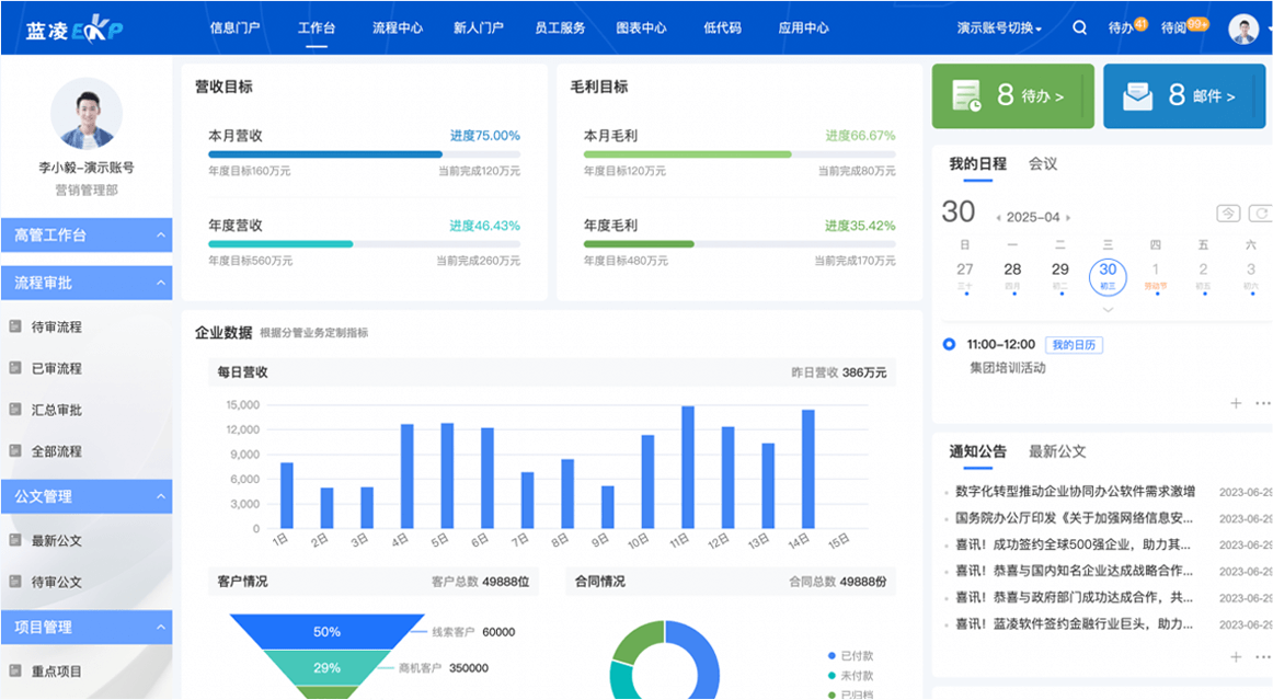藍(lán)凌專精特新企業(yè)數(shù)智化協(xié)同平臺(tái)