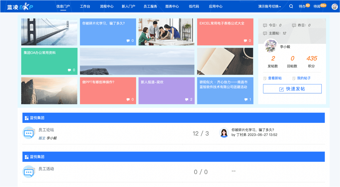 支持在線社區(qū)版塊、帖子、積分管理、匿名發(fā)帖等,活躍文化氛圍,讓員工建言獻(xiàn)策